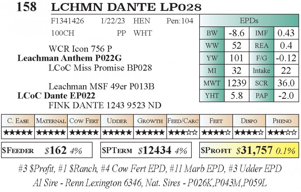 #3 $Profit, #1 $Ranch, #4 Cow Fert EPD, #11 Marb EPD, #3 Udder EPD