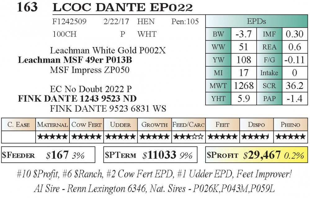 #10 $Profit, #6 $Ranch, #2 Cow Fert EPD, #1 Udder EPD, Feet Improver!