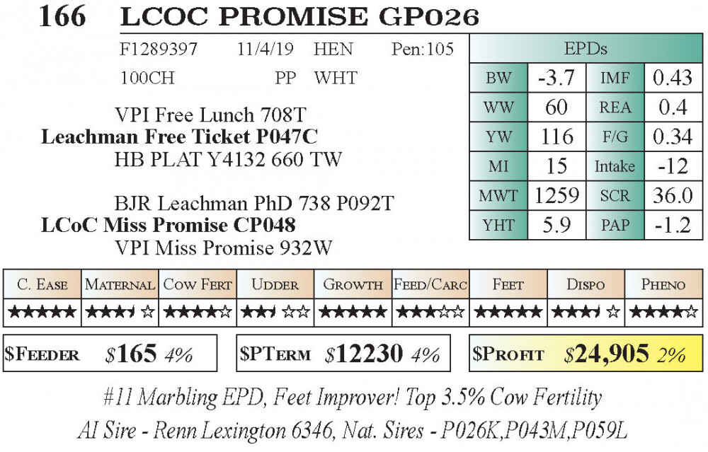 LCOC PROMISE GP026 (#166) 11.21.2025 Leachman Fall Roundup Bull & Female Sale 10:00 am MTN Charolais Female Charolais Female