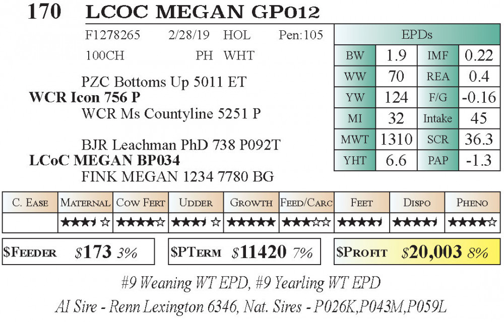 LCOC MEGAN GP012 (#170) 11.21.2025 Leachman Fall Roundup Bull & Female Sale 10:00 am MTN Charolais Female Charolais Female