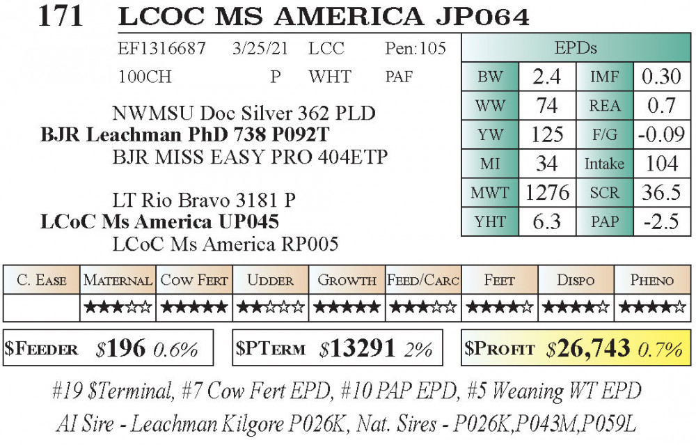#19 $Terminal, #7 Cow Fert EPD, #10 PAP EPD, #5 Weaning WT EPD
