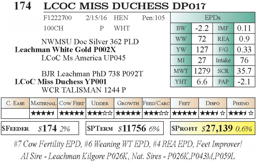 LCOC MISS DUCHESS DP017 (#174) 11.21.2025 Leachman Fall Roundup Bull & Female Sale 10:00 am MTN Charolais Female Charolais Female