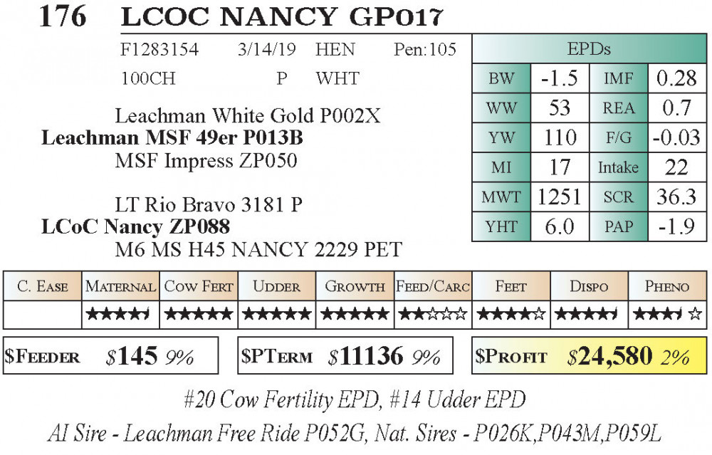 LCOC NANCY GP017 (#176) 11.21.2025 Leachman Fall Roundup Bull & Female Sale 10:00 am MTN Charolais Female Charolais Female