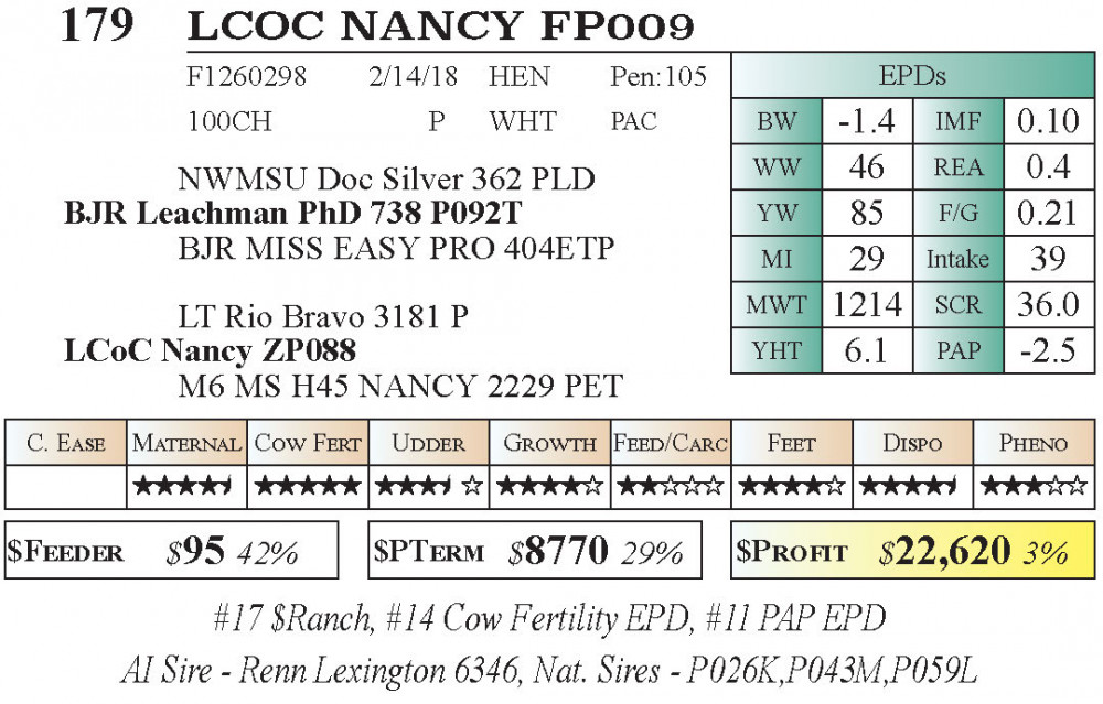 #17 $Ranch, #14 Cow Fertility EPD, #11 PAP EPD