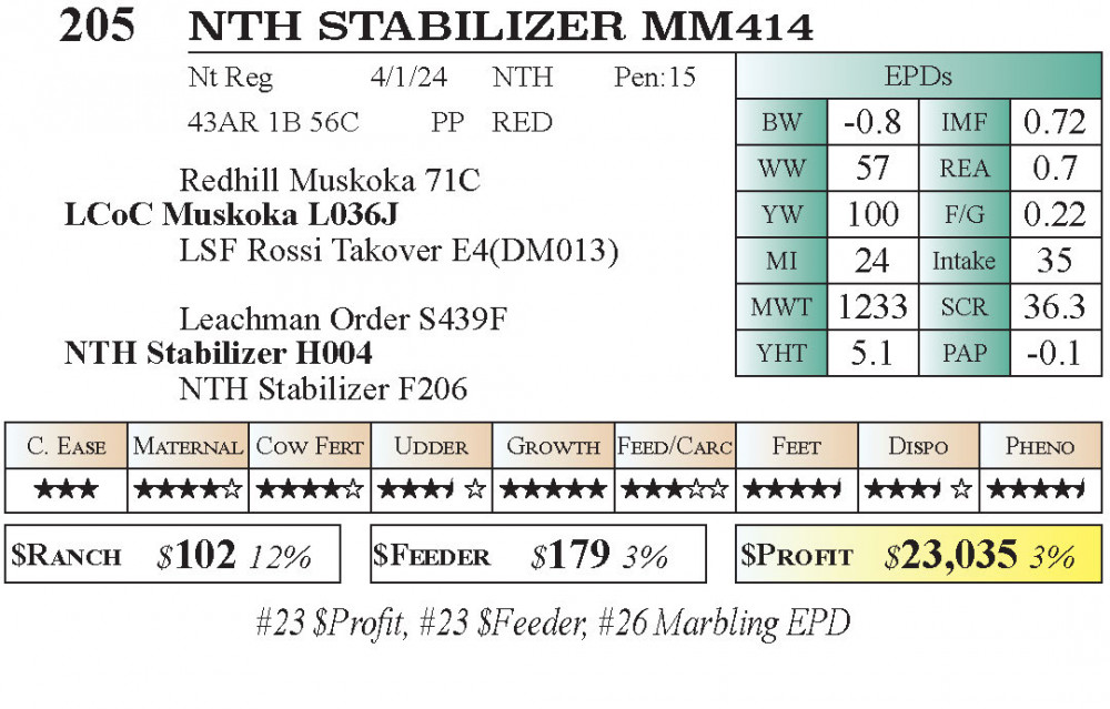 NTH STABILIZER MM414 (#205) 11.21.2025 Leachman Fall Roundup Bull & Female Sale 10:00 am MTN Stabilizer Female