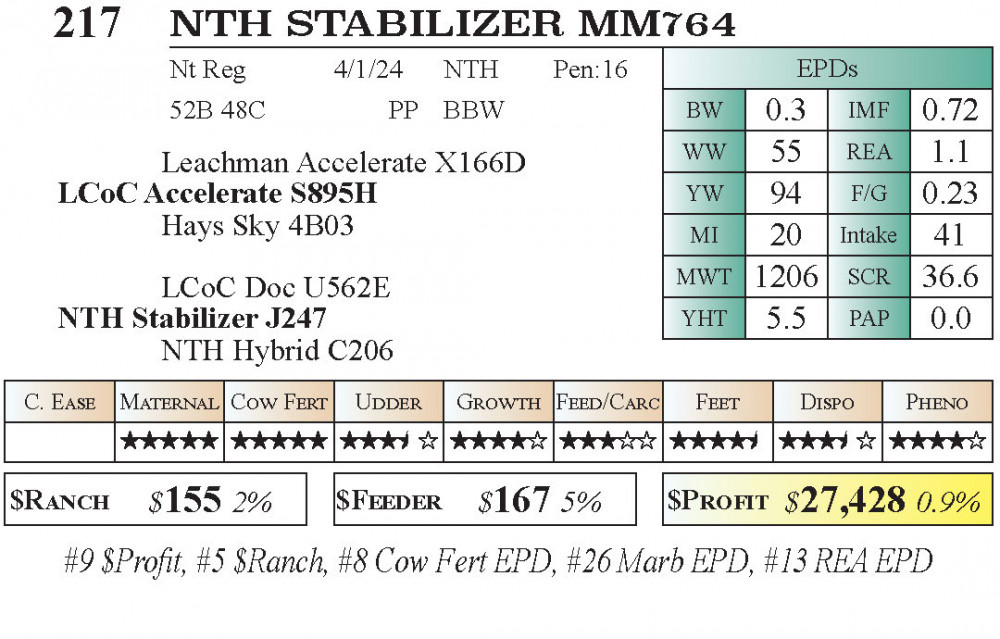 NTH STABILIZER MM764 (#217) 11.21.2025 Leachman Fall Roundup Bull & Female Sale 10:00 am MTN Stabilizer Female