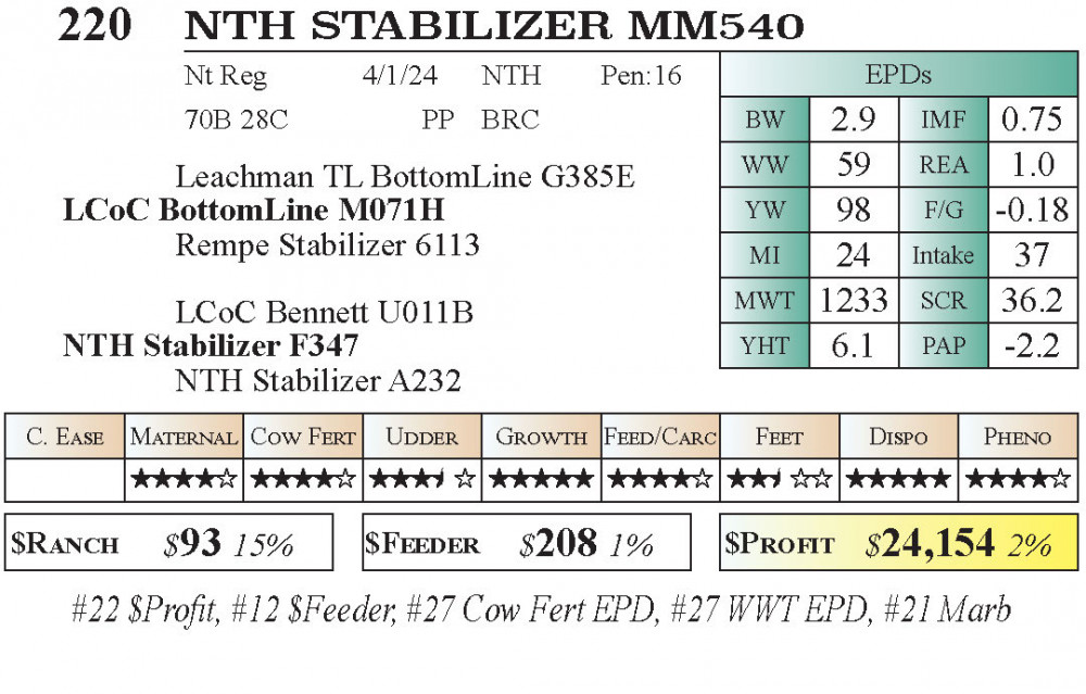 NTH STABILIZER MM540 (#220) 11.21.2025 Leachman Fall Roundup Bull & Female Sale 10:00 am MTN Stabilizer Female