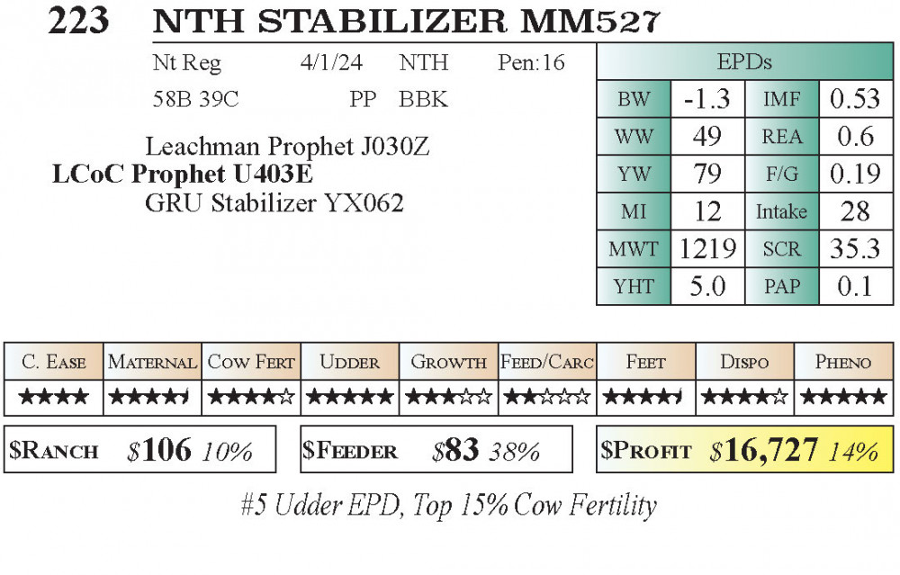 NTH STABILIZER MM527 (#223) 11.21.2025 Leachman Fall Roundup Bull & Female Sale 10:00 am MTN Stabilizer Female