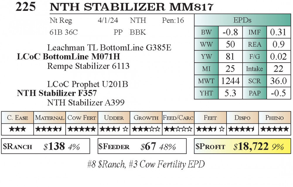 NTH STABILIZER MM817 (#225) 11.21.2025 Leachman Fall Roundup Bull & Female Sale 10:00 am MTN Stabilizer Female