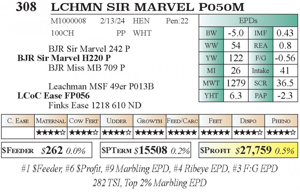 LCHMN SIR MARVEL P050M (#308) 11.21.2025 Leachman Fall Roundup Bull & Female Sale 10:00 am MTN Charolais