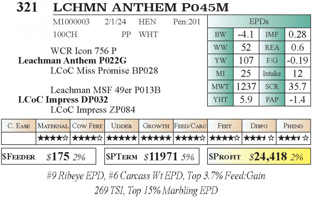 LCHMN ANTHEM P045M (#321) 11.21.2025 Leachman Fall Roundup Bull & Female Sale 10:00 am MTN Charolais