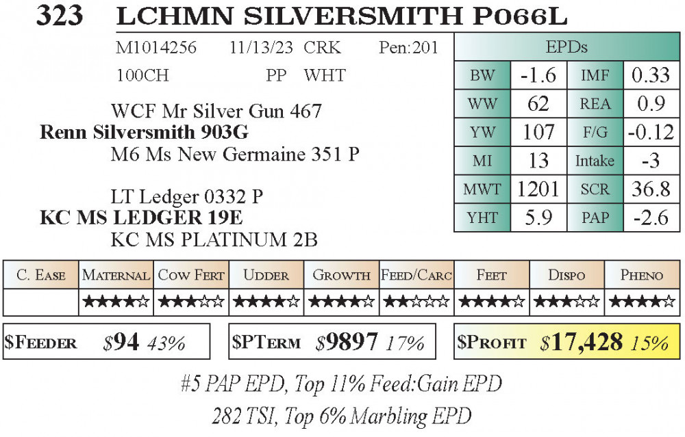 LCHMN SILVERSMITH P066L (#323) 11.21.2025 Leachman Fall Roundup Bull & Female Sale 10:00 am MTN Charolais