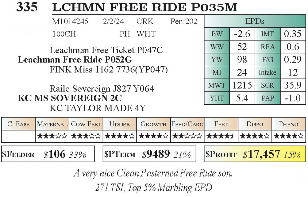 LCHMN FREE RIDE P035M (#335) 11.21.2025 Leachman Fall Roundup Bull & Female Sale 10:00 am MTN Charolais