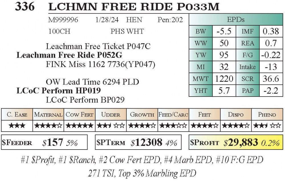 LCHMN FREE RIDE P033M (#336) 11.21.2025 Leachman Fall Roundup Bull & Female Sale 10:00 am MTN Charolais