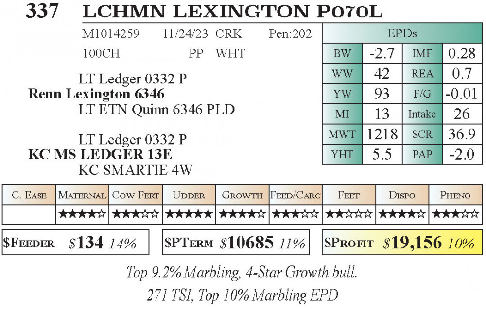 LCHMN LEXINGTON P070L (#337) 11.21.2025 Leachman Fall Roundup Bull & Female Sale 10:00 am MTN Charolais