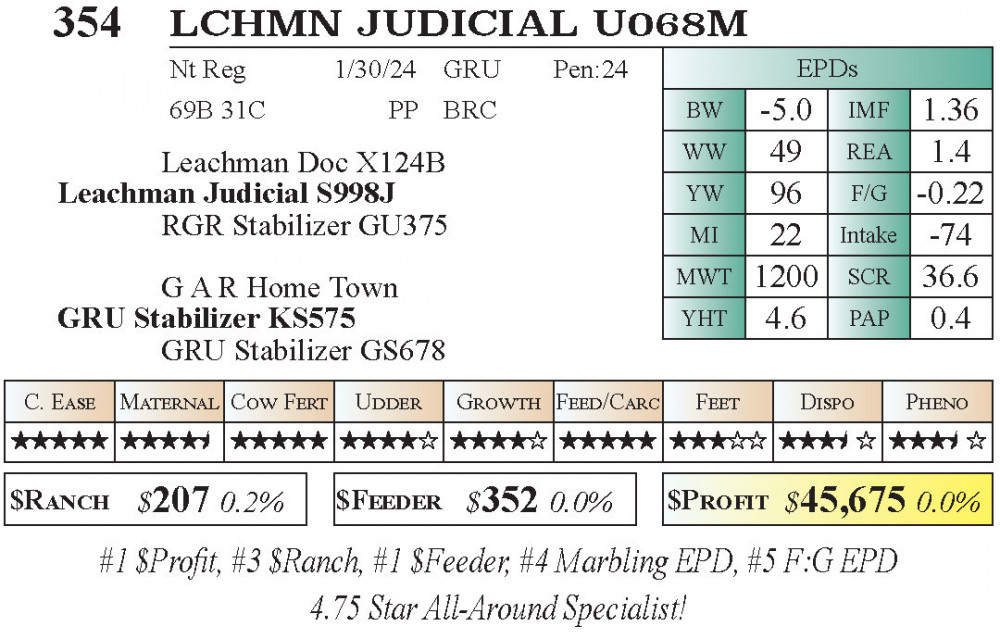 LCHMN JUDICIAL U068M (#354) 11.21.2025 Leachman Fall Roundup Bull & Female Sale 10:00 am MTN Stabilizer