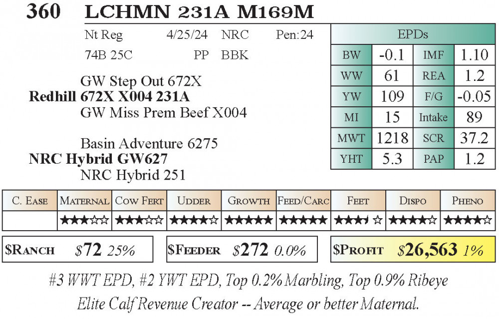 #3 WWT EPD, #2 YWT EPD, Top 0.2% Marbling, Top 0.9% Ribeye