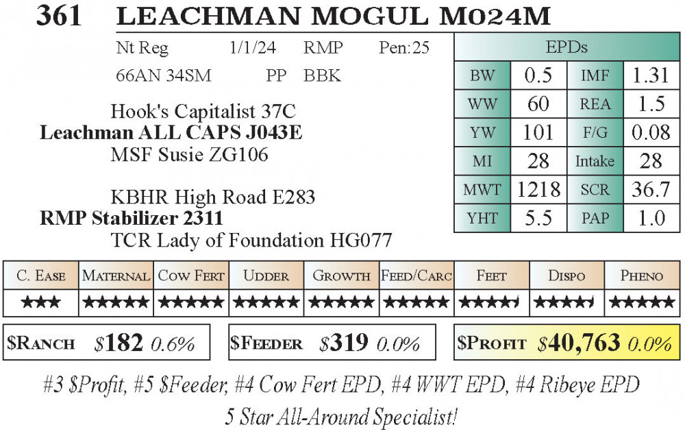LEACHMAN MOGUL M024M (#361) 11.21.2025 Leachman Fall Roundup Bull & Female Sale 10:00 am MTN Stabilizer