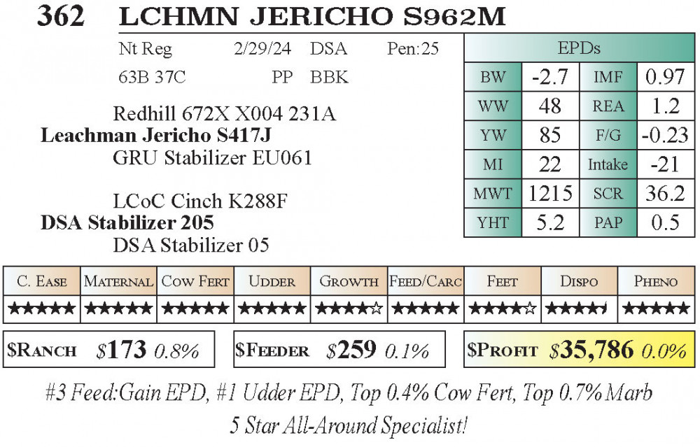 LCHMN JERICHO S962M (#362) 11.21.2025 Leachman Fall Roundup Bull & Female Sale 10:00 am MTN Stabilizer