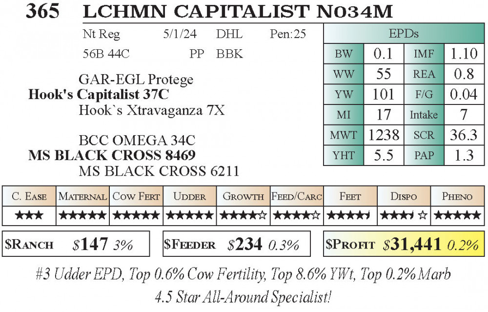 LCHMN CAPITALIST N034M (#365) 11.21.2025 Leachman Fall Roundup Bull & Female Sale 10:00 am MTN Stabilizer