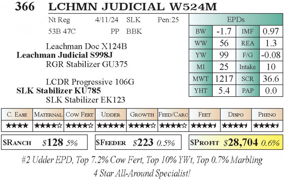 LCHMN JUDICIAL W524M (#366) 11.21.2025 Leachman Fall Roundup Bull & Female Sale 10:00 am MTN Stabilizer