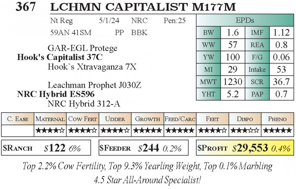 LCHMN CAPITALIST M177M (#367) 11.21.2025 Leachman Fall Roundup Bull & Female Sale 10:00 am MTN Stabilizer