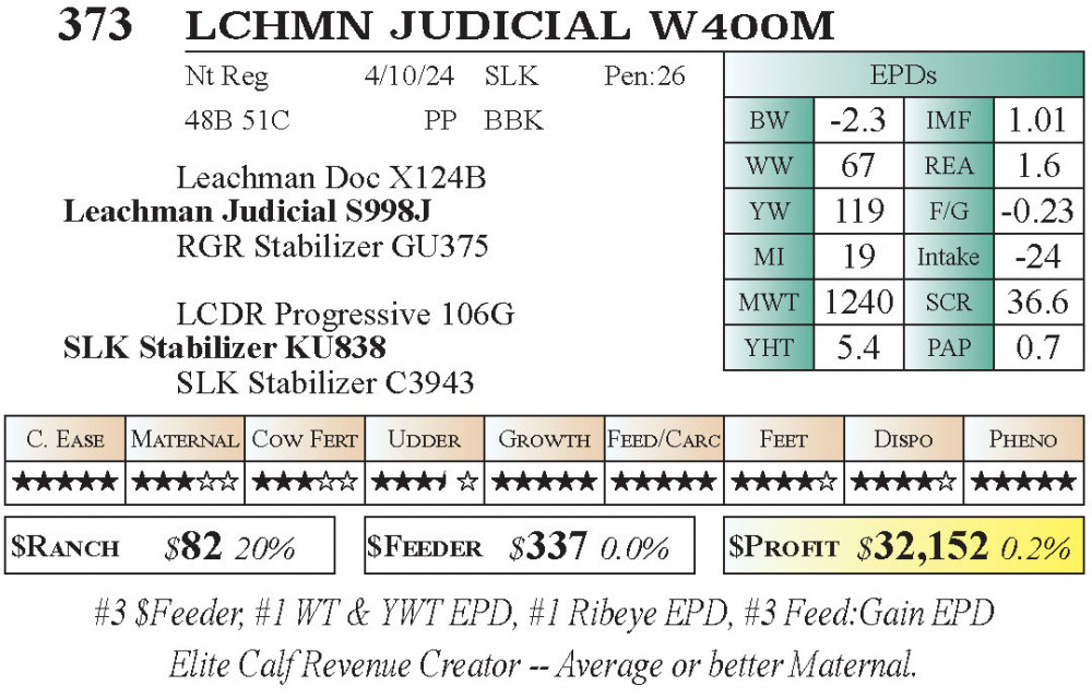 LCHMN JUDICIAL W400M (#373) 11.21.2025 Leachman Fall Roundup Bull & Female Sale 10:00 am MTN Stabilizer