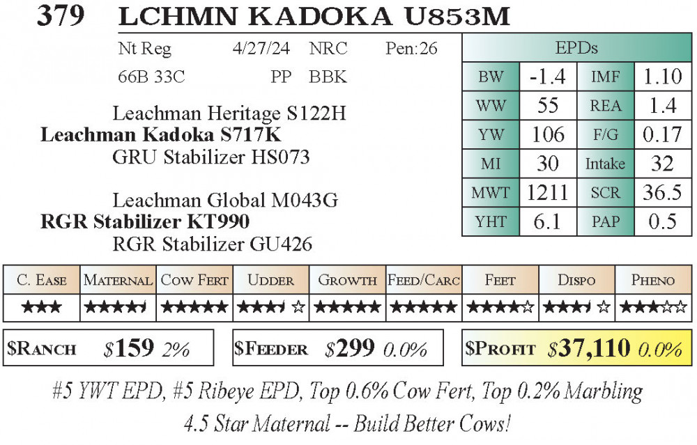 LCHMN KADOKA U853M (#379) 11.21.2025 Leachman Fall Roundup Bull & Female Sale 10:00 am MTN Stabilizer