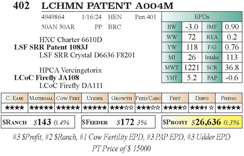 #5 $Profit, #1 PAP EPD, Top 2.9% Cow Fertility, Top 1.5% Marbling
