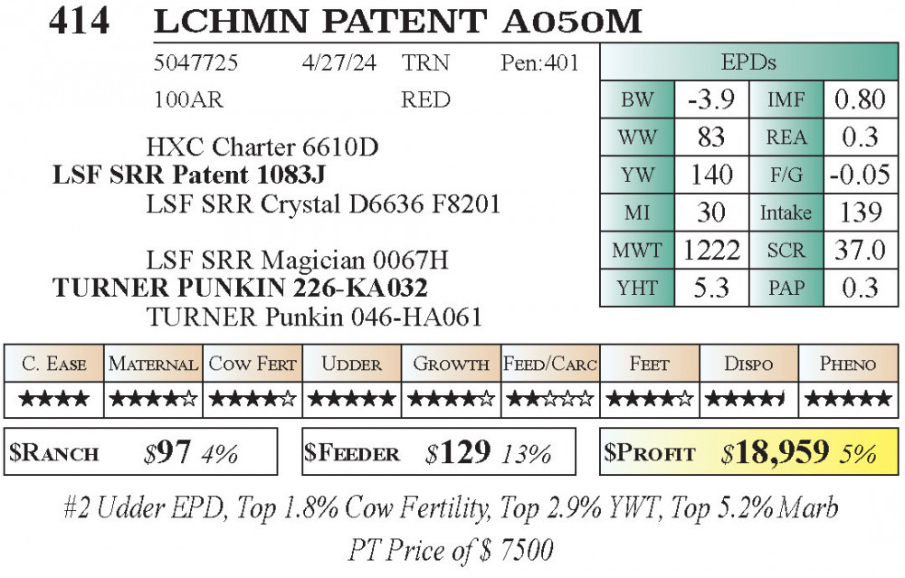 LCHMN PATENT A050M (#414) 11.21.2025 Leachman Fall Roundup Bull & Female Sale 10:00 am MTN PT Bulls - Red Angus