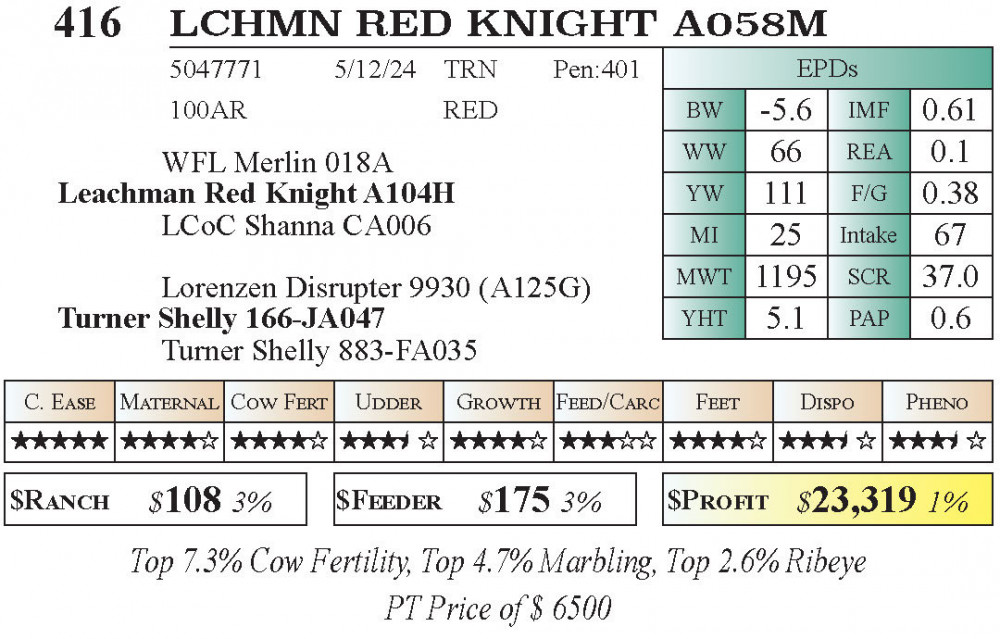 LCHMN RED KNIGHT A058M (#416) 11.21.2025 Leachman Fall Roundup Bull & Female Sale 10:00 am MTN PT Bulls - Red Angus