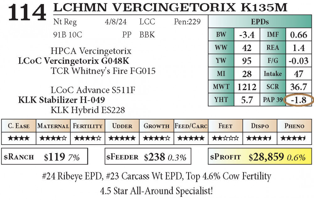 #24 Ribeye EPD, #23 Carcass Wt EPD, Top 4.6% Cow Fertility