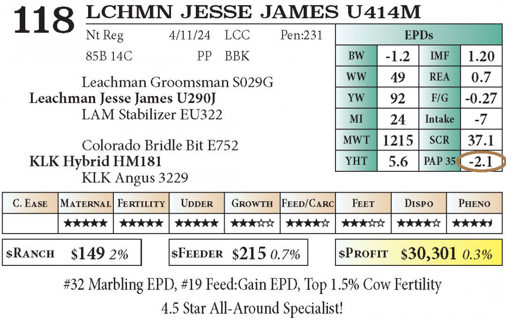 LCHMN JESSE JAMES U414M (#118) 12.06.25 Leachman High Altitude Sale 11:00 AM MTN