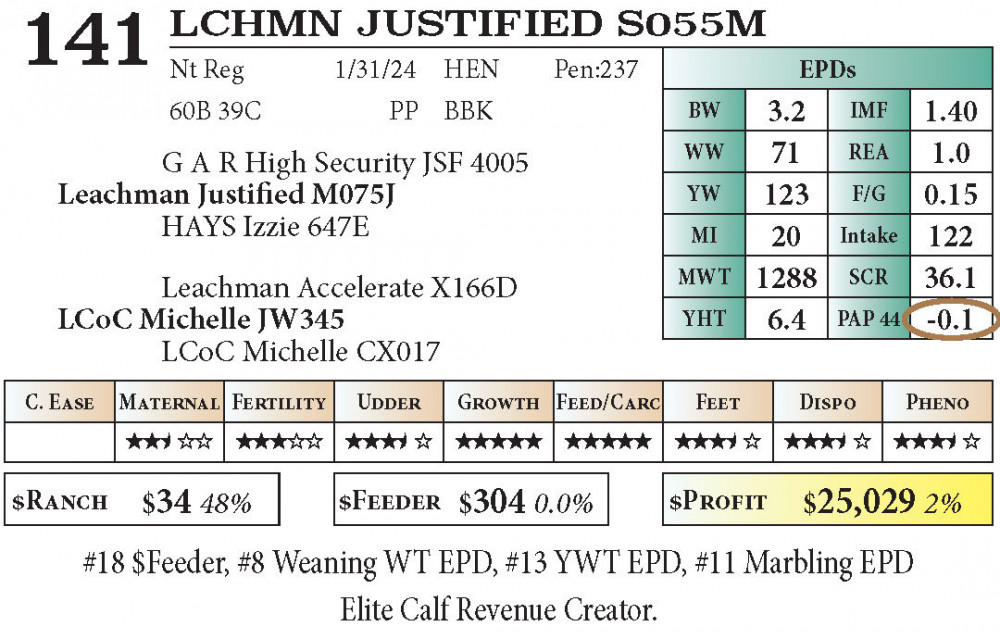 #18 $Feeder, #8 Weaning WT EPD, #13 YWT EPD, #11 Marbling EPD