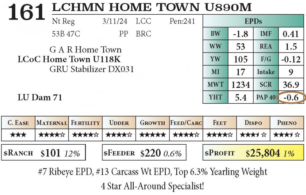 #7 Ribeye EPD, #13 Carcass Wt EPD, Top 6.3% Yearling Weight