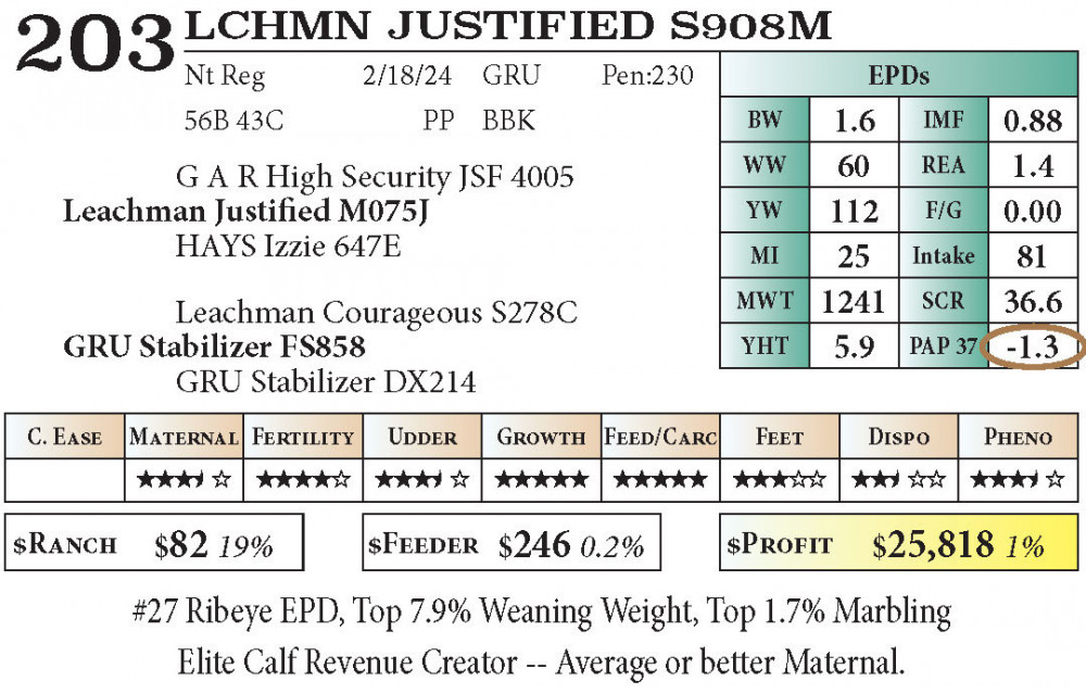 LCHMN JUSTIFIED S908M (#203) 12.06.25 Leachman High Altitude Sale 11:00 AM MTN