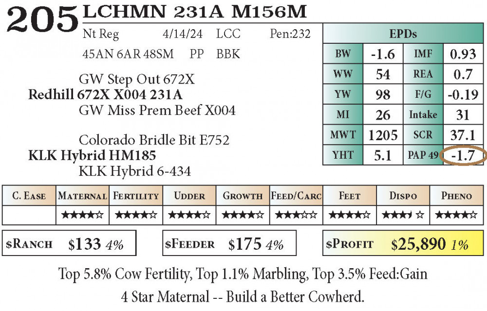 Top 5.8% Cow Fertility, Top 1.1% Marbling, Top 3.5% Feed:Gain
