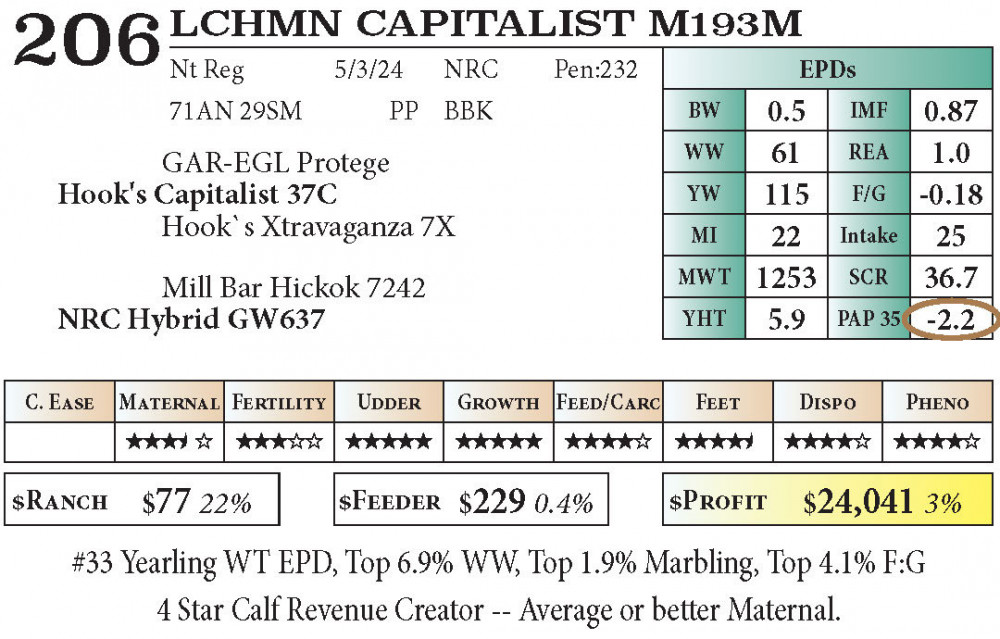 #33 Yearling WT EPD, Top 6.9% WW, Top 1.9% Marbling, Top 4.1% F:G