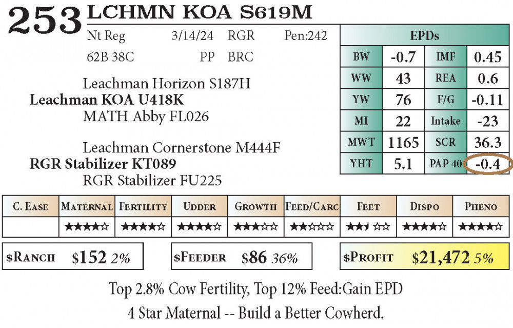 Top 2.8% Cow Fertility, Top 12% Feed:Gain EPD
