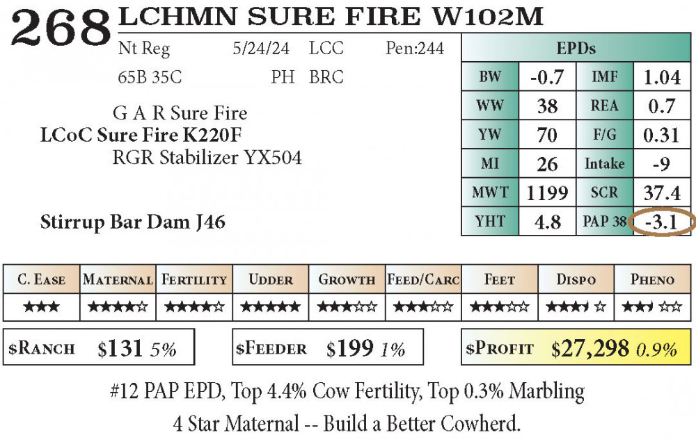 #12 PAP EPD, Top 4.4% Cow Fertility, Top 0.3% Marbling
