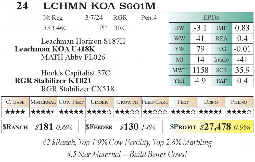 LCHMN KOA S601M (#24) 12.18.25 Leachman Texas Fall $Profit Sale 10:00 AM CT Bull - Stabilizer