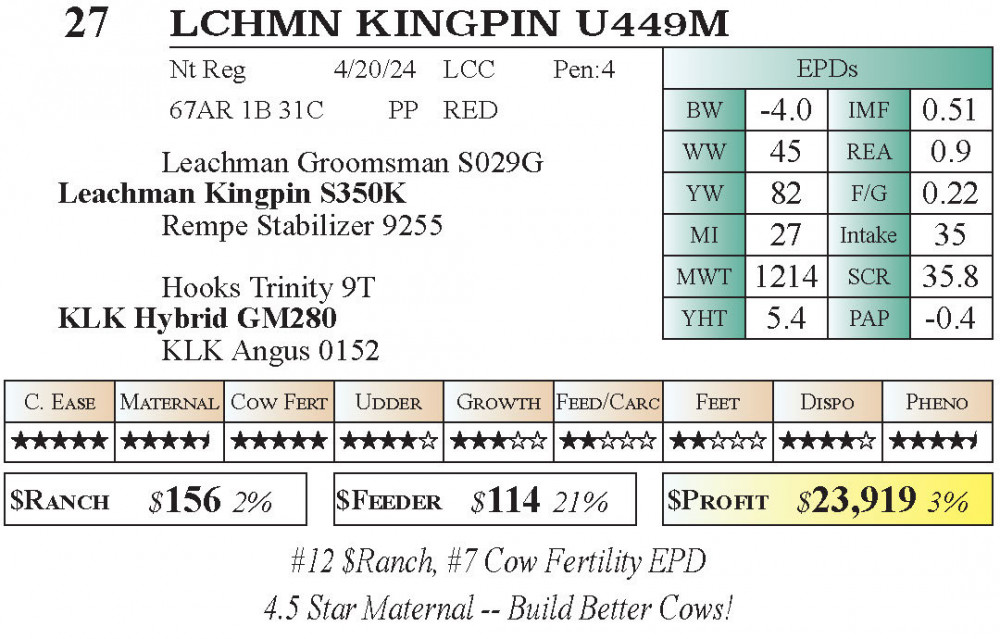 LCHMN KINGPIN U449M (#27) 12.18.25 Leachman Texas Fall $Profit Sale 10:00 AM CT Bull - Stabilizer