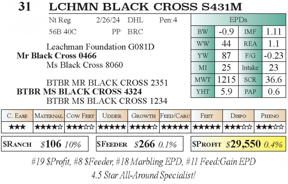 LCHMN BLACK CROSS S431M (#31) 12.18.25 Leachman Texas Fall $Profit Sale 10:00 AM CT Bull - Stabilizer