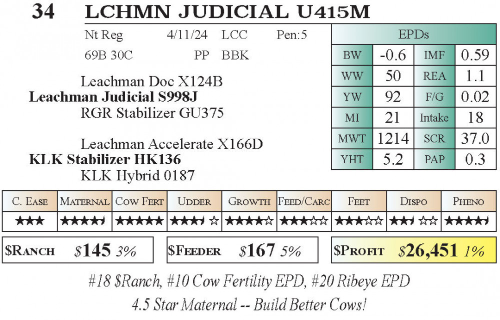 LCHMN JUDICIAL U415M (#34) 12.18.25 Leachman Texas Fall $Profit Sale 10:00 AM CT Bull - Stabilizer