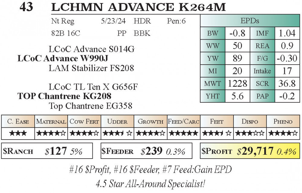 LCHMN ADVANCE K264M (#43) 12.18.25 Leachman Texas Fall $Profit Sale 10:00 AM CT Bull - Stabilizer