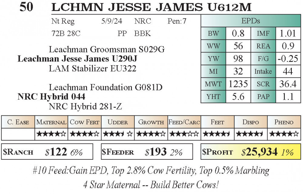 LCHMN JESSE JAMES U612M (#50) 12.18.25 Leachman Texas Fall $Profit Sale 10:00 AM CT Bull - Stabilizer