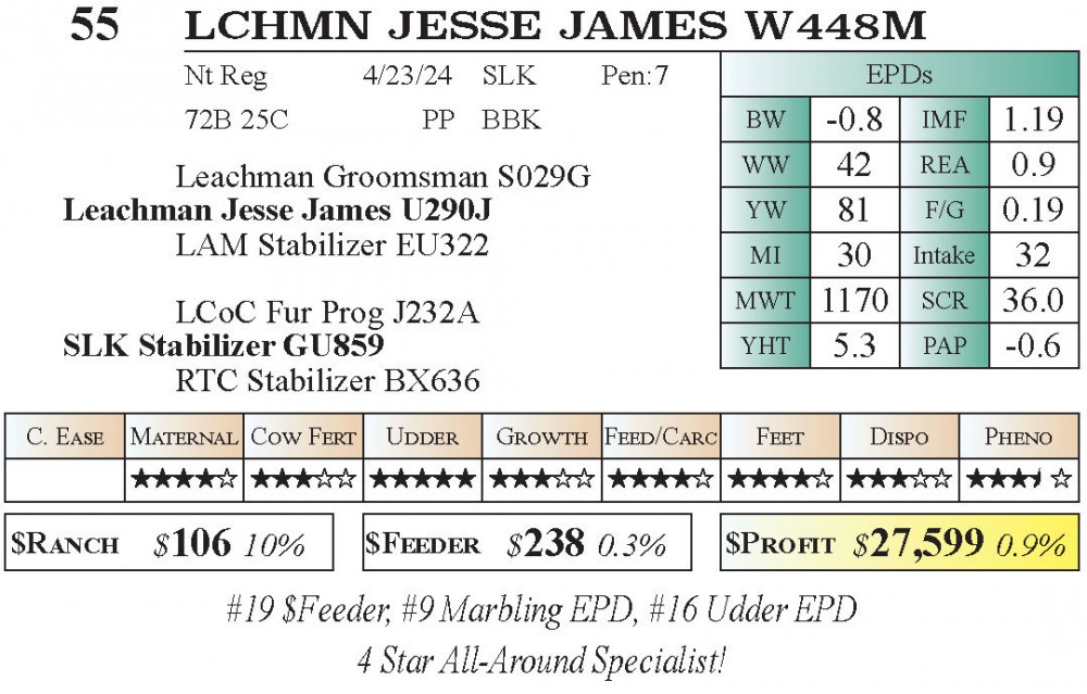 LCHMN JESSE JAMES W448M (#55) 12.18.25 Leachman Texas Fall $Profit Sale 10:00 AM CT Bull - Stabilizer