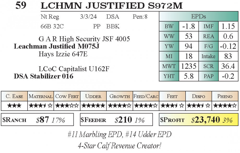 LCHMN JUSTIFIED S972M (#59) 12.18.25 Leachman Texas Fall $Profit Sale 10:00 AM CT Bull - Stabilizer