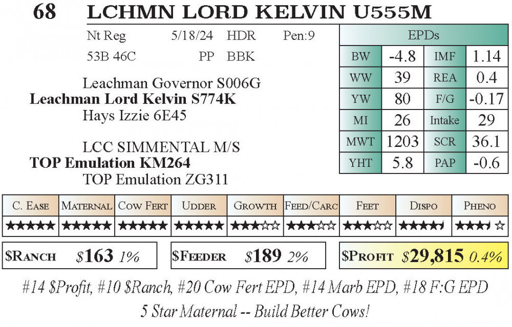 LCHMN LORD KELVIN U555M (#68) 12.18.25 Leachman Texas Fall $Profit Sale 10:00 AM CT Bull - Stabilizer