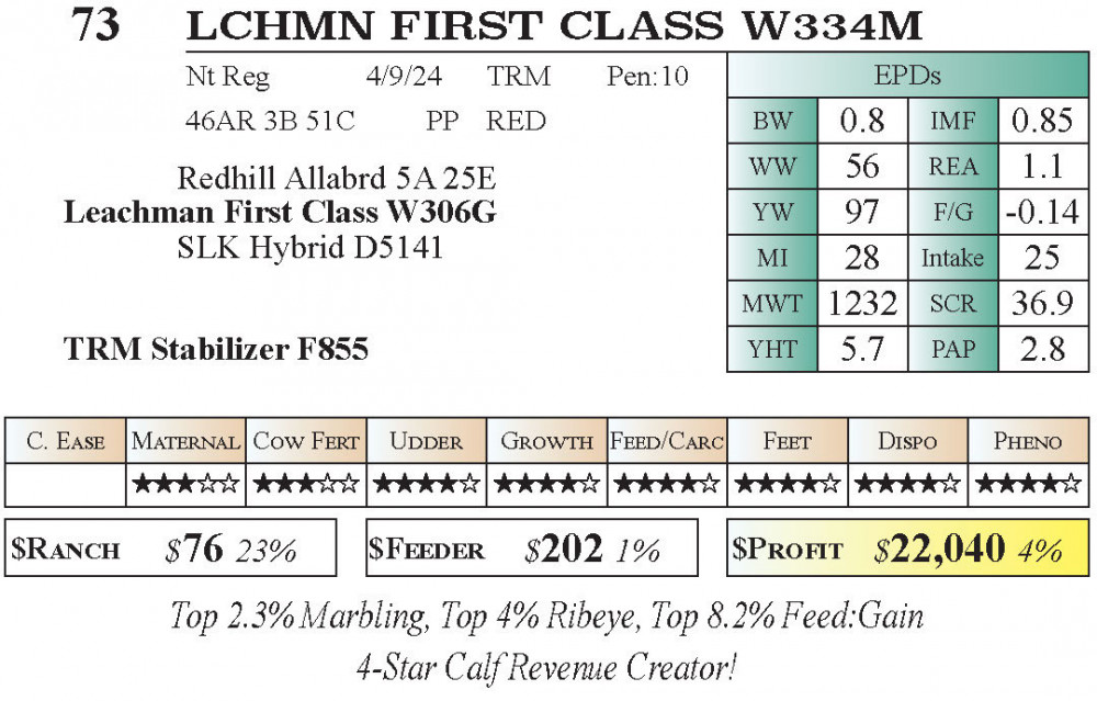 LCHMN FIRST CLASS W334M (#73) 12.18.25 Leachman Texas Fall $Profit Sale 10:00 AM CT Bull - Stabilizer